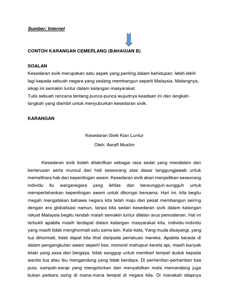 Bagi seorang pelajar menuntut ilmu sangatlah penting negara sangat membutuhkan penerus-penerus bangsa yang cerdas untuk bisa memajukan suatu negara serta menjaga keutuhannya. Nilai Murni Berkaitan Dengan Perkembangan Diri. Semoga perkongsian bahan-bahan rujukan panduan bahan pembelajaran dan pengajaran contoh-contoh karangan sumber rujukan SPM Sijil Pelajaran Malaysia tingkatan 4 tingkatan 5 dalam post di blog Bumi Gemilang berguna dan dapat.